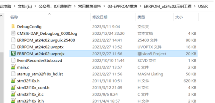 完整驱动代码可以参考目录“.\HARDWARE\24CXX ”文件夹下的文件
